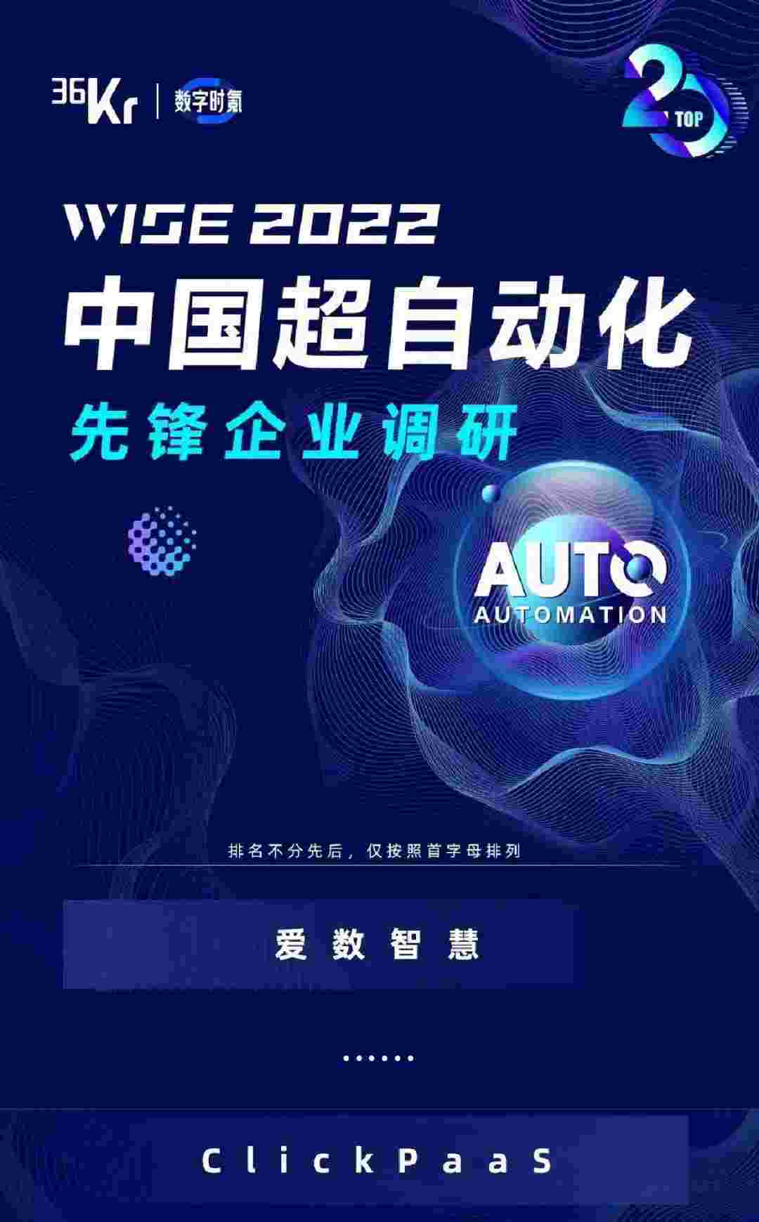 8月10日,,,,由36Kr主办的WISE 2022中国超自动化峰会在杭州成功举办。。。圆梦钱包作为国内低代码PaaS平台的领军企业,,,,凭借过硬的技术实力和优质的产品能力,,,,在本次峰会中实力入选「2022年中国超自动化先锋企业」20强。。